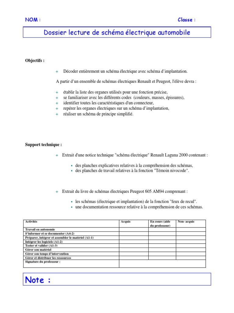 Dossier Lecture De Schema Electrique Automobile A Partir D Un Ensemble De Schemas Electriques Renault Et Peugeot L Eleve Devra Pdf Telechargement Gratuit